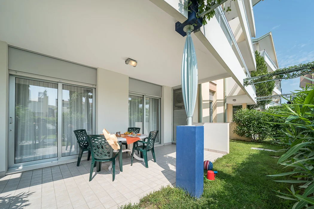 TRZYPOKOJOWY apartament na parterze z ogrodem dla maks. 5-6 osób: pokój dzienny z rozkładanym tapczanem dwuosobowym, 1 sypialnia z 2 łóżkami (z możliwością złączenia), 1 sypialnia z 2 łóżkami (z możliwością złączenia) i trzecim łóżkiem, aneks kuchenny, łazienka, obszerny zadaszony balkon, rezerwowane miejsce parkingowe zadaszone.